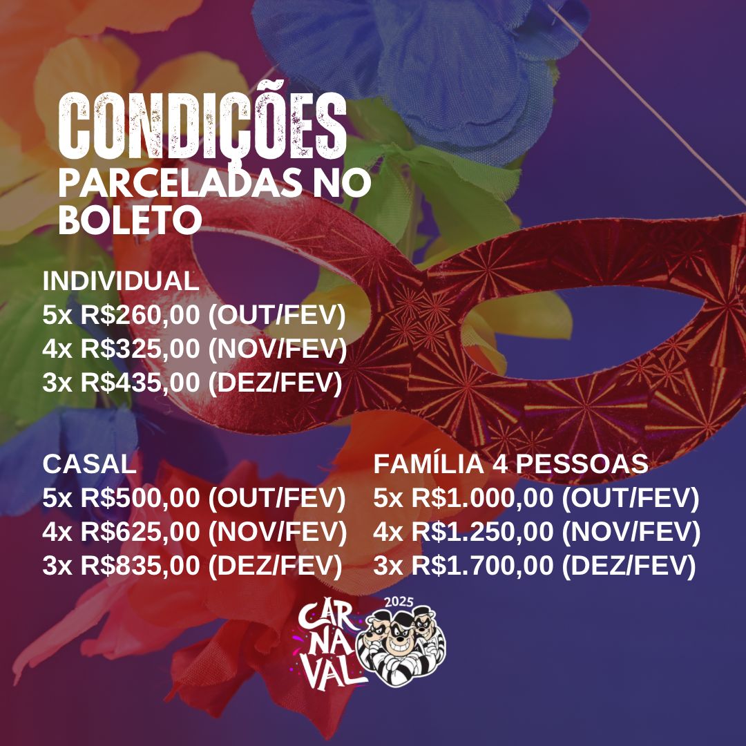 - Já quer garantir a sua vaga para o carnaval 2025? Só contatar no (55)99192-0411 e escolher a melhor forma de pagamento.