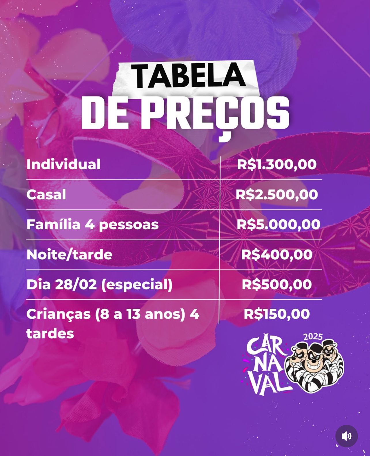 TABELA DE PREÇO PARA O CARNAVAL 2025!
